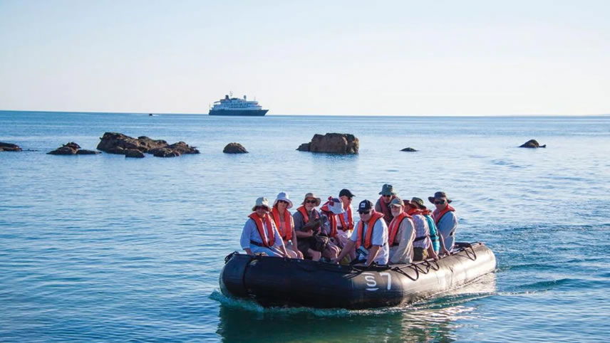 With epic cascades, fascinating reefs and gorges carved by powerful rivers, the Kimberley Coast is simply spectacular. From the sublime Horizontal Falls, to ancient Indigenous rock art, gain a front-row seat to the region’s most amazing sights. Be guided by your Expedition Leader and Team as you explore the phenomenal Montgomery Reef and admire vibrant marine life during an incredible cruising experience.