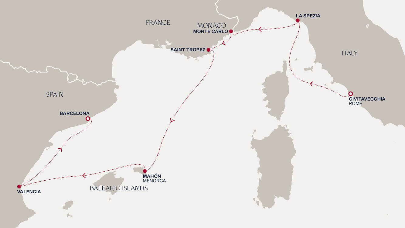 Your cruise finishes today in Barcelona, a captivating city on Spain's northeastern coast. If you're extending your stay in the city, start with a visit to La Sagrada Família, Antoni Gaudí's masterpiece, then wander through the narrow, historic streets of the Gothic Quarter.