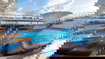 These stylish Penthouses include a bedroom with a queen-size bed, single sofa bed, luxury bath with a shower and bathtub, living and dining area, and unparalleled views from the aft-facing balcony. Plus you'll be spoiled read more with butler and concierge service. Accommodates: 3. Total Approx. Size: 33-34 m2. Balcony Size: 6-7 m2