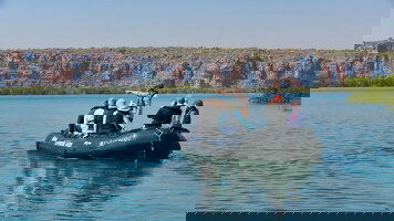 Board a Zodiac for a ride through Horizontal Falls as water thunders between the steep gorges that frame the turquoise cascade.