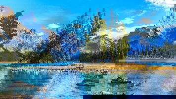 Take a cruise atop the turquoise water of Maligne Lake, one of the most beautiful in the park, across to Spirit Island. Here a backdrop of towering peaks and gleaming glaciers are a photographer’s dream.