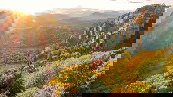 Wind along paths carved into the smooth rock, where these monasteries perch overlooking the lush green Peneios Valley. Of the 24 original monasteries constructed from the 14th to 16th centuries, six are still in operation.