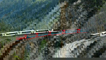 Be thrilled by dramatic mountain passes and criss crossing viaducts as you travel on a breathtaking rail journey between St Moritz and Zermatt.