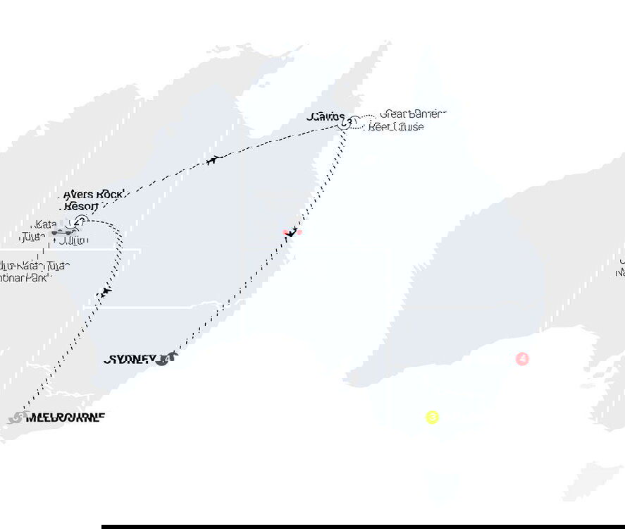 The rusty red landscapes of Uluru beckon as you leave Melbourne for Ayers Rock Resort, your backdrop this afternoon is the world's largest rock monolith. Follow your guide to the perfect perch to capture Uluru as the last of the day disappears, glass of bubbles in hand (of course). (B) Stay: Desert Gardens
