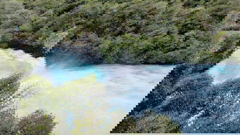 The road ahead unfolds in a broad panorama of Lake Taupo, the largest of its kind in the country. It's a landscape almost as otherworldly as Rotorua, where mud pops and jettisons from bubbling geysers, and steam rushes skywards from cracks in the Earth.