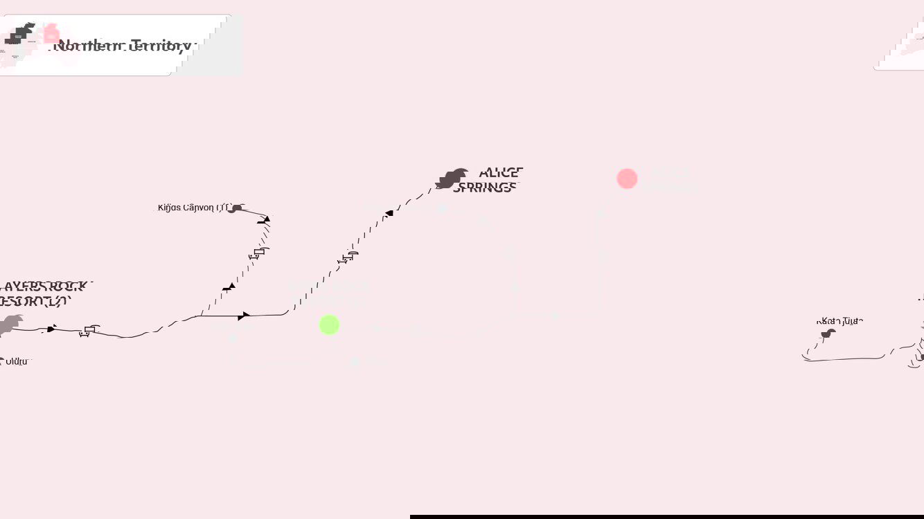 Rise early to make the rocky climb to the rim of the canyon for marvellous views of Watarrka National Park at sunrise. Follow the rim of the canyon stopping to look down into the canyon gorge at look-out points. Time permitting, you may choose to descend into the green oasis of the 'Garden of Eden'. The circuit walk takes approximately 3 hours to complete and is rocky and steep in parts. It is recommended for those with a very high level of fitness. Alternatively, you may wish to take an easier, shorter walk to explore the boulder strewn canyon floor. You will board your coach to travel to Alice Springs. Along the way stop at Erldunda, a classic Northern Territory Roadhouse located at the junction of the Stuart Highway and Lasseter Highway. Travel along the Stuart Highway before arriving in Alice Springs. (B)