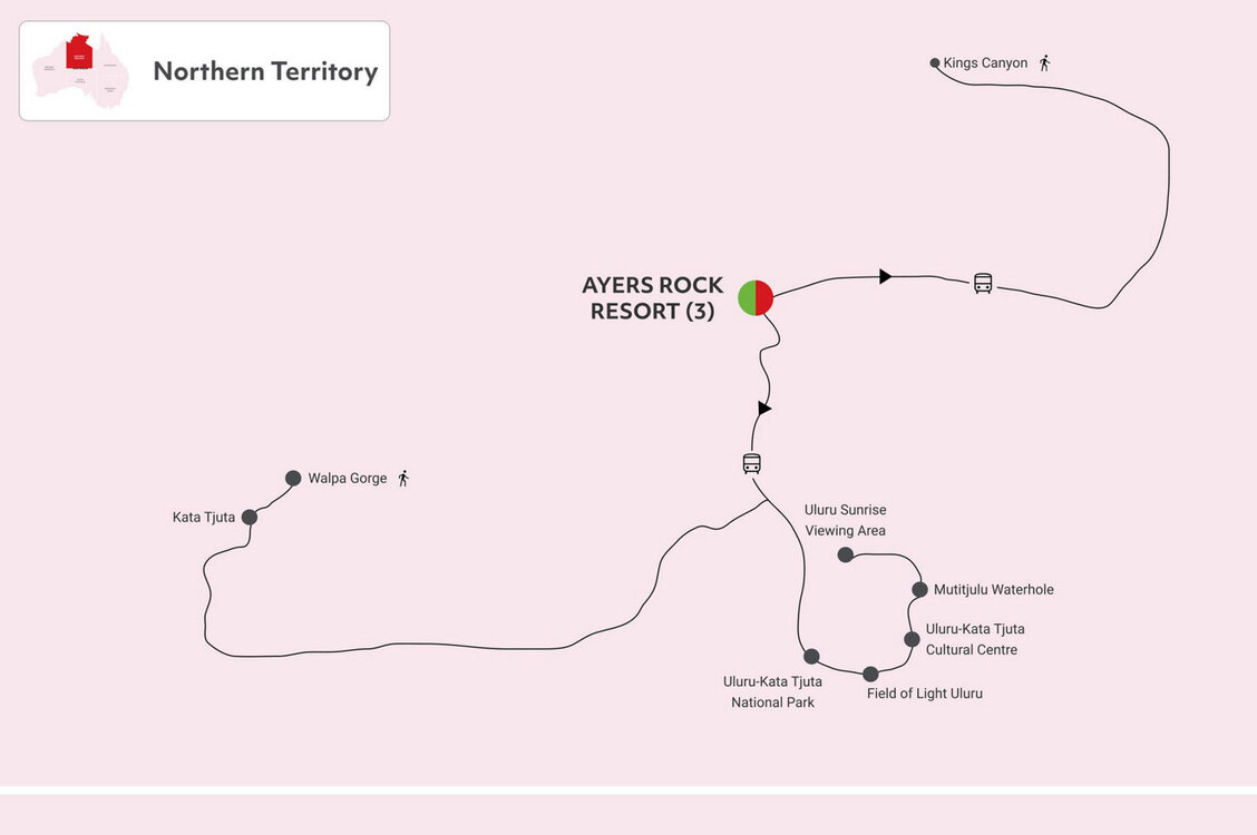 When you arrive at Ayers Rock Airport, make your way to the front of the airport terminal for a complimentary transfer to your hotel. (flights to arrive prior to 1pm). This afternoon, visit the Uluru-Kata Tjuta Cultural Centre.