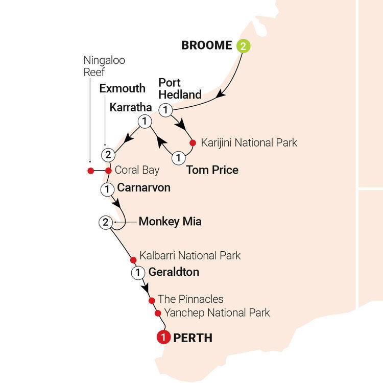 There are a few (hundred) kilometres of Pilbara region to cover between Karratha and Exmouth on the World Heritage listed Ningaloo Coast. On your hypnotic journey, just imagine all the magical marine creatures you might glimpse when you dive into Ningaloo Reef – Exmouth is the gateway. But your focus here should be firmly on the ocean, whether you're swimming in it or cruising above it. Your accommodation is only meters from the waterline, so you can be assured of a mesmerizing view on the North West Cape. (B/D) Stay: Mantarays Ningaloo Beach Resort