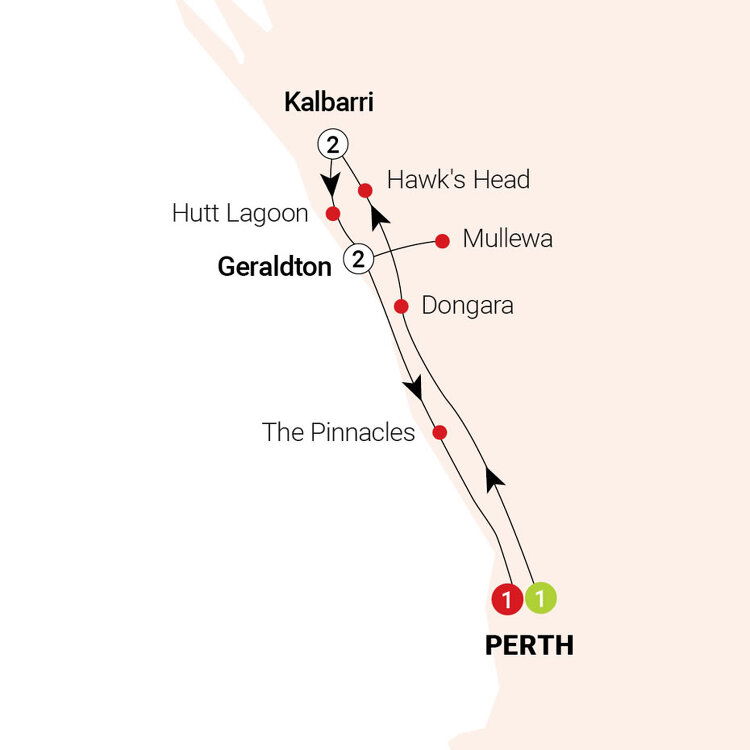 Settle in for a few hours of hypnotic scenery on your tour from Perth as you make your way north to Kalbarri. Visit a local distillery on your way. Glimpse how their distinctive spirits are made while wandering between the barrels and enjoy a few quenching distillations. (B/L/D) Stay: Kalbarri Edge Resort