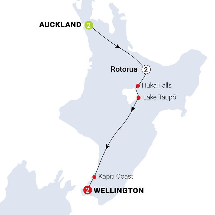 You'll hear Huka Falls well before you see it - 220,000 litres of water thunder over an 11 metre high waterfall every second. The road ahead unfolds in a broad panorama of Lake Taupo then the Kapiti Coast to New Zealand's cool little capital, Wellington. (B/D) Stay: Rydges Wellington