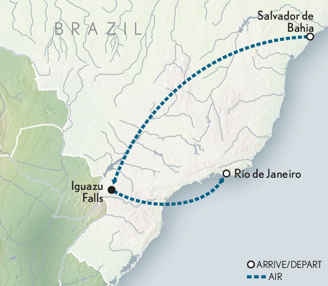 Tonight, gather for a unique and unforgettable Chef's Table experience at Casa du Chef, where, over five amazing courses paired with wine from exquisite South American wineries, you discover how the combined heritage of indigenous peoples, Africans and Europeans have forged Brazil's unique flavours over the past 500 years. Stay: Hotel das Cataratas, A Belmond Hotel, Iguassu Falls (B/D)