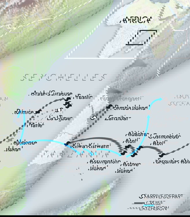 Cruise to the Outer Islands of the Seychelles, coming ashore to explore historic Astove, an island renowned for its large inner lagoon and jaw-dropping underwater sea cliff. Here, you might visit an abandoned coconut plantation, embark on a birding walk in search of the endemic souimanga sunbird or relax on the island's spectacular beaches. Stay: Le Bougainville (B/L/D)