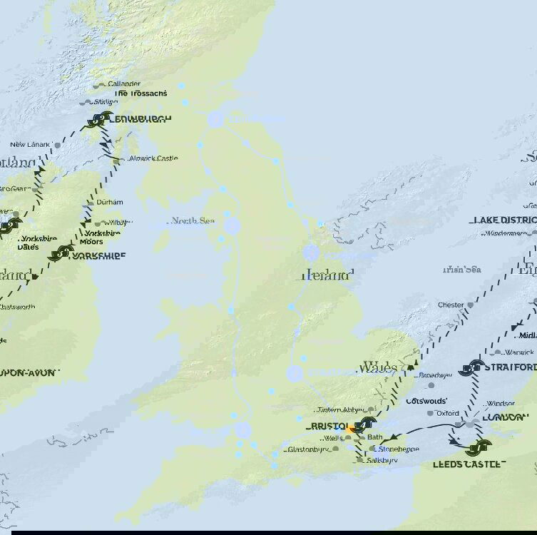 This morning we visit nearby Warwick and its magnificent, medieval castle. An expert local guide will join us to breathe life into a thousand years of secrets which hide in the shadows of this famous ‘Kingmaker' castle – tales of murder, mystery, intrigue and scandal. After also visiting Anne Hathaway's cottage and Shakespeare's Birthplace the rest of the day and evening will be free to relax and wander the streets of Elizabethan Stratford-upon-Avon. (B) Stay: Crowne Plaza Stratford-upon-Avon