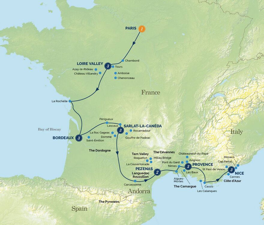 As a finalé, we continue to the Dordogne Valley with its sleepy villages, medieval châteaux, meandering rivers and lush landscape that so epitomises French rural life. We stay the next three nights in the heart of perfectly preserved Sarlat la Canéda, one of the most stunning towns in France. This evening dinner is included in a local restaurant set in the cobbled streets of this ancient town. (B/D) Stay: Plaza Madeleine Hotel & Spa