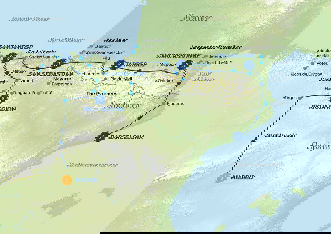 Today is at leisure to go shopping and explore the exciting city centre. For the more energetic, maybe take a walk to the Magdalena Palace on the headland with its lush green gardens and sweeping views across the beach and estuary. (B) Stay: Hotel Bahia, Santander, Spain