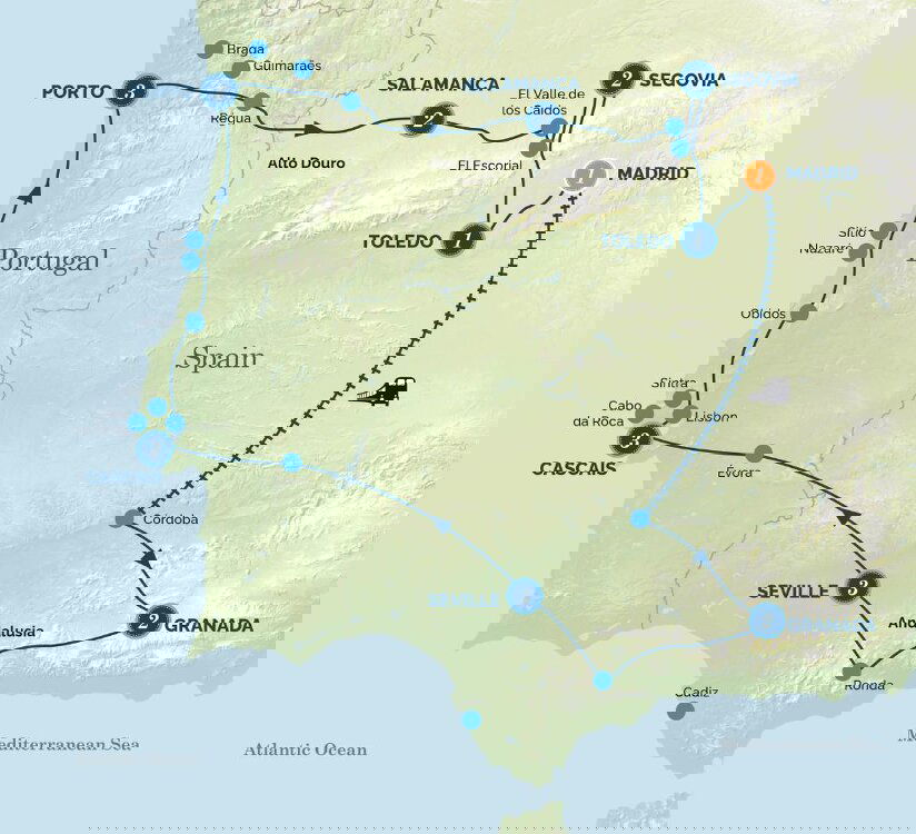 After breakfast we will transfer you to Madrid where your tour ends late morning. Drop off points will be the city centre followed by the airport. We recommend you book flights or trains that depart Madrid after 2pm. (B)