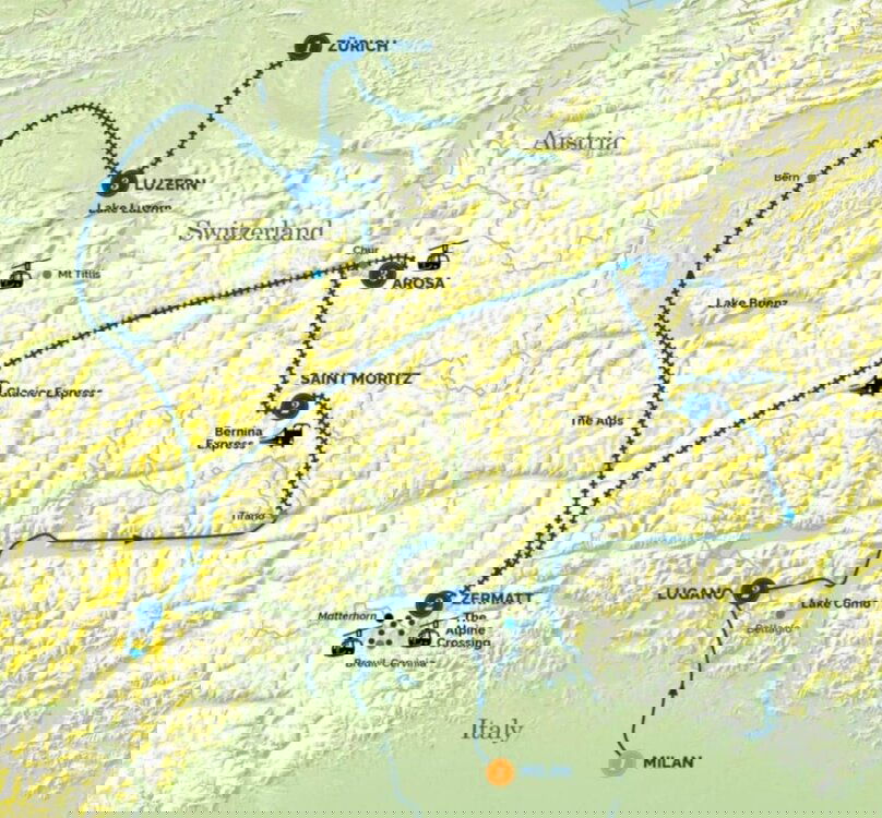 In the morning, your Tour Manager will accompany you on a brief orientation walking tour of the town, and then most of the day is yours to explore St Moritz. Want to be active? Maybe catch a train or cable car up to a mountain restaurant for lunch? In the afternoon we enjoy a delightful horse and carriage ride around the St Moritz lakeside and into the forest. Your evening is at leisure. (B) Stay: Hotel Steffani, St Moritz, Switzerland