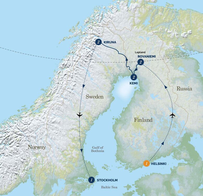 Your tour commences this evening in the cosmopolitan city of Helsinki. Before dinner, enjoy a welcome drink in the hotel with your Tour Manager and fellow Arctic Adventurers. (D) Stay: Original Sokos Hotel Vaakuna