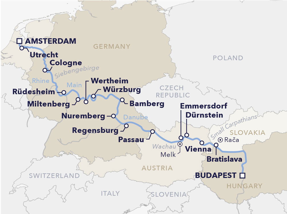 In the afternoon, learn more about World War II and the Nazi past at the Documentation Center of Nuremberg. Back on board, we will go to the European watershed separating the Main and Danube rivers.