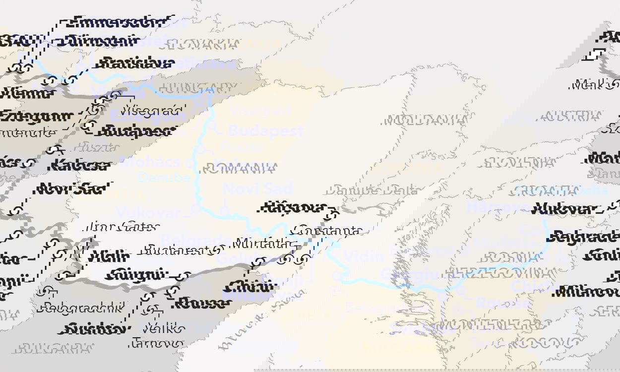 The names are as imposing as the scenery. Golubac, a town located on the Danube which borders Romania and Serbia, is home to the Golubac Fortress. Wander the massive walls and towers, learning about its rich history. Or step into ancient times and visit the 8,000-year-old archaeological site Lepenski Vir. If nature pulls at your heart, spend the afternoon on a hiking tour of Djerdap National Park until rejoining the ship at Donji Milanovac by lunchtime.