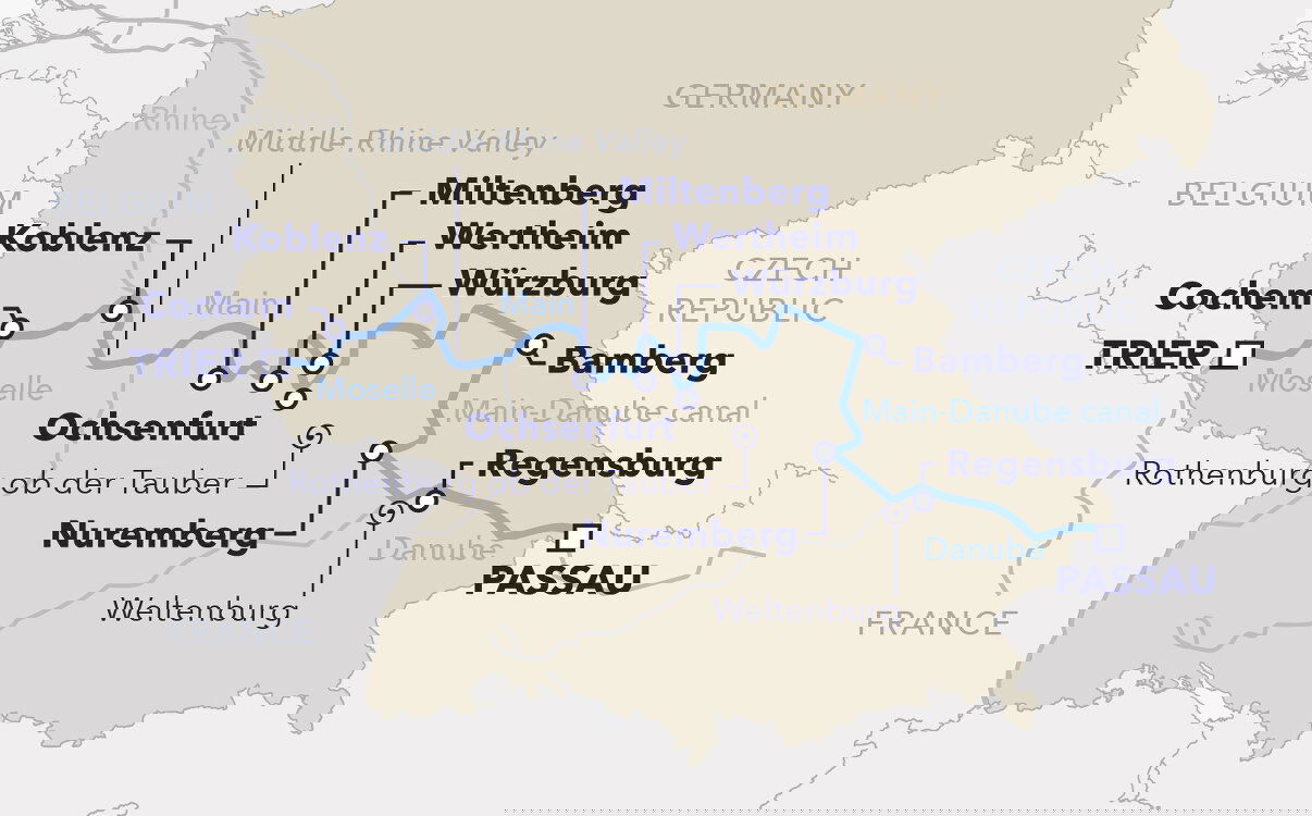 Wake up to a unique engineering marvel – the first stretch of the Main-Danube Canal, Europe's highest waterway. Later, Nürnberg awaits with its mix of medieval charm and modern life: Hauptmarkt, Lorenz Church, Max Bridge, and the imposing Imperial Castle. By evening, raise a toast to Bavarian cheer at a lively onboard celebration as the ship glides toward Bamberg.