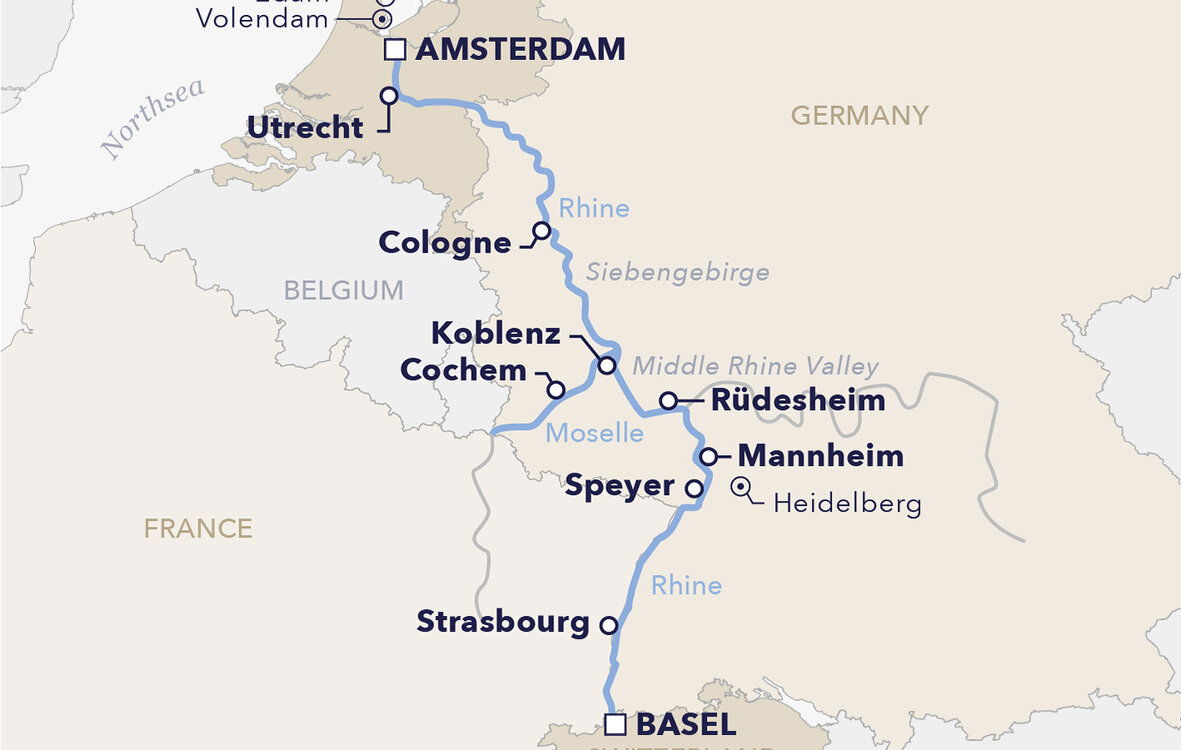 Choose to spend the morning exploring Amsterdam with a relaxing canal cruise. You will be back on board for lunch and set off with us from Utrecht upstream to Cologne.