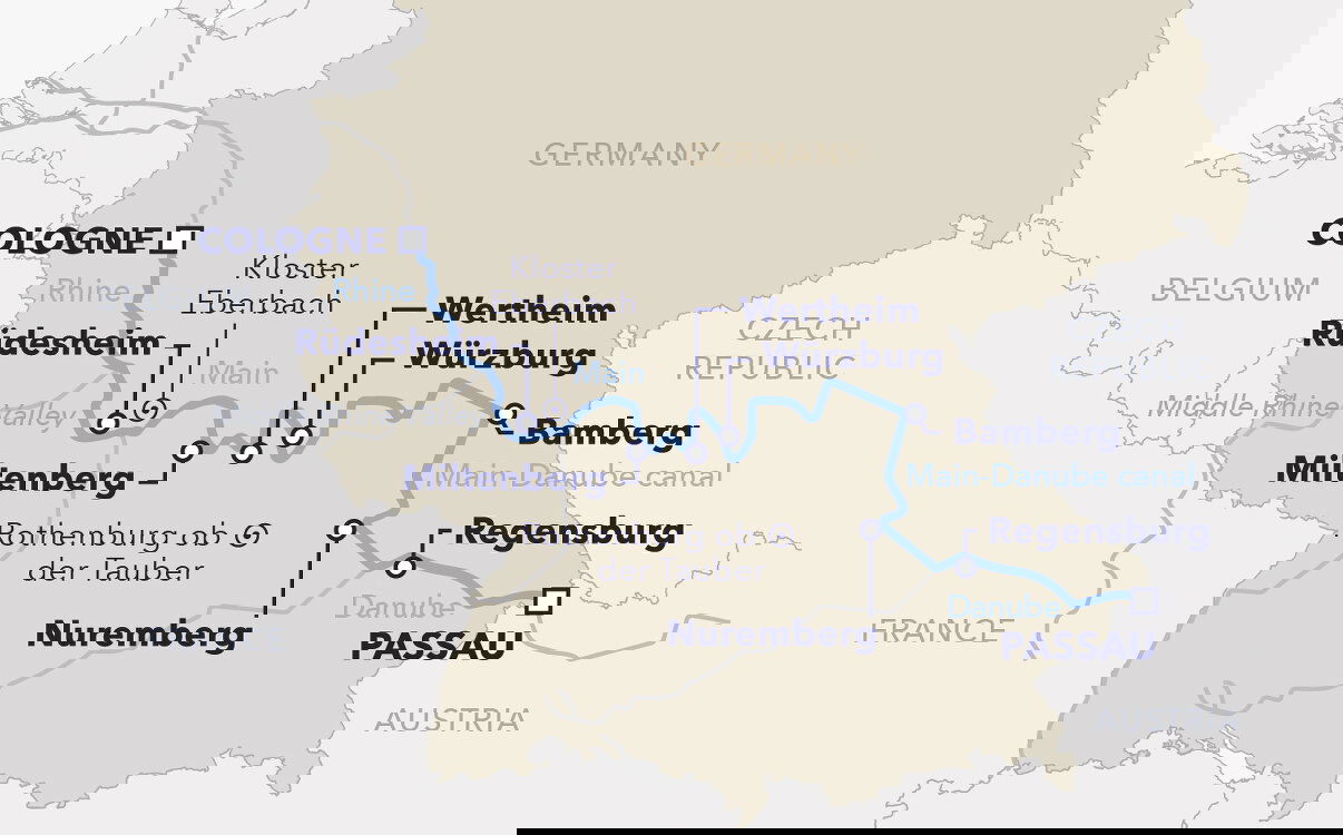 This morning, your vessel arrives in Passau. After breakfast we wish you a good trip home and hope to see you again soon!