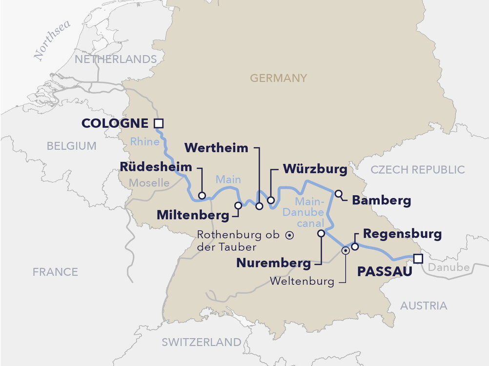 After a hearty breakfast, bid farewell to the AMADEUS crew and set off for your journey home, taking unforgettable memories of the Rhine and Danube with you.
