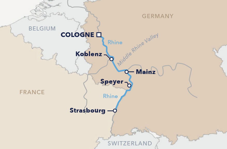 After breakfast, enjoy a fascinating city tour through this Rhine metropolis. An eventful 2,000-year history has left its mark on the city, and this “city of churches” boasts countless highlights, in particular the Cologne Cathedral, which you will visit during the course of the tour, as well as the Roman Dionysus mosaic. The afternoon is at your disposal, and you have plenty of time for a shopping spree or a leisurely stroll before dinner on board.