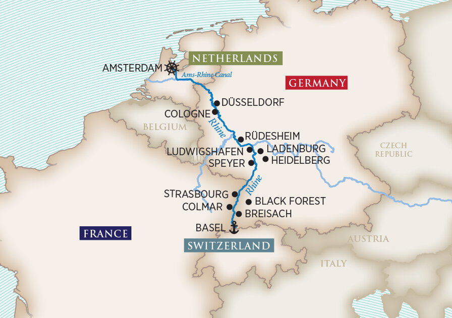 Follow the Rhine into Germany, where your first port of call is Düsseldorf. Explore this cultural hub on a walking tour followed by a tasting of Altbier, a Düsseldorf specialty; or see more of the city on a guided bike ride. Alternatively, travel to nearby Cologne and visit the historic sites of the enchanting Old Town, including a walk past the UNESCO-designated Dom Cathedral, or set out on a walking tour of the town's many Roman sites and see ancient artifacts at the Belgian House. (B/L/D)