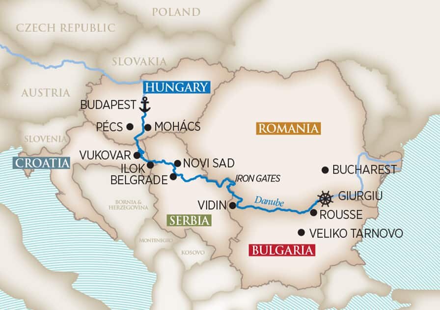 In the afternoon, enjoy a taste of the region by sampling a few types of Serbian brandy paired with delicious local appetizers, including Šlivovitz, which was added in 2022 to UNESCO's list of “Intangible Cultural Heritage.” For those wishing a more active adventure, join a guided bike tour. Or explore Novi Sad, a city rich in tradition and culture, on “The Athens of Serbia” walking tour. Stroll through Stari Grad, the old town center; and explore Liberty Square, which is dominated by the Old Town Hall. You will also have the option to visit the Petrovaradin Fortress. (B/L/D)