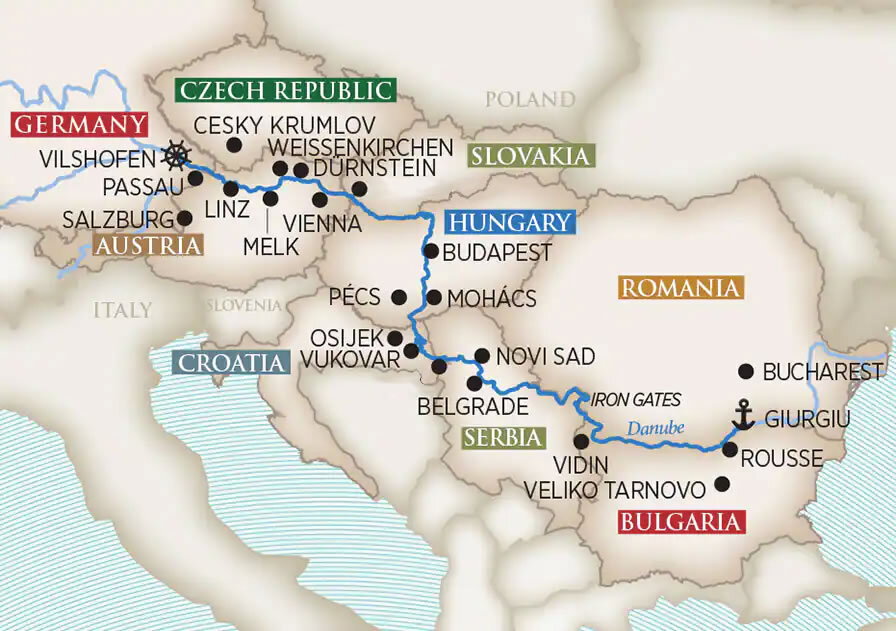 Disembark the ship and bid farewell to Giurgiu as you prepare for your flight home. (B)