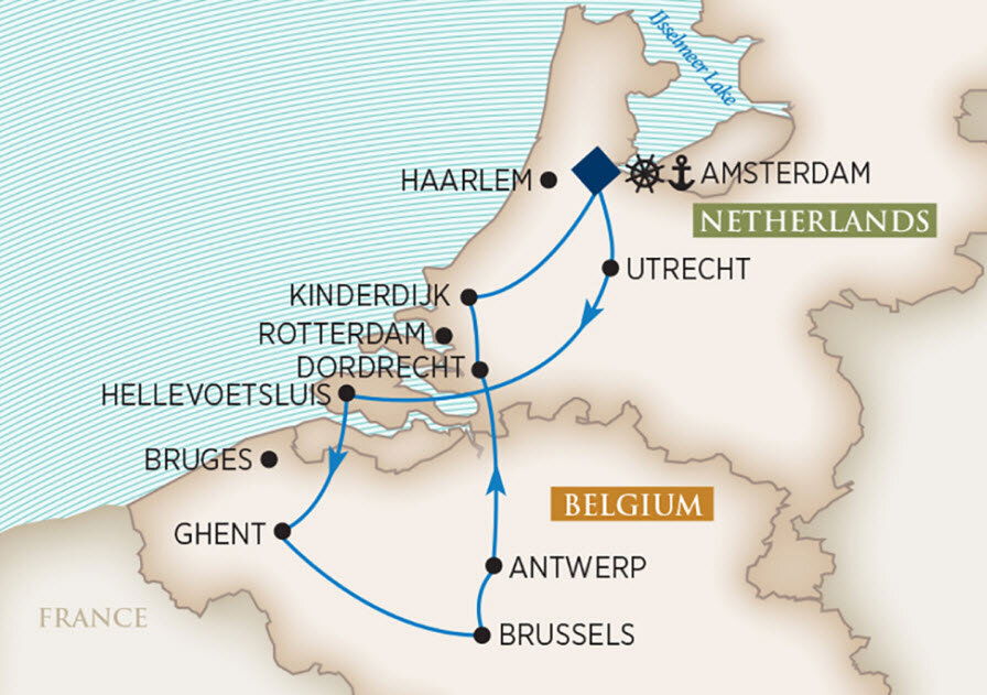 Board the ship in Amsterdam for your Best of Holland & Belgium cruise.