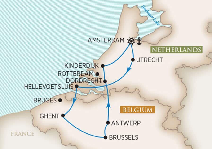 Board the ship in Amsterdam for your Best of Holland & Belgium cruise.