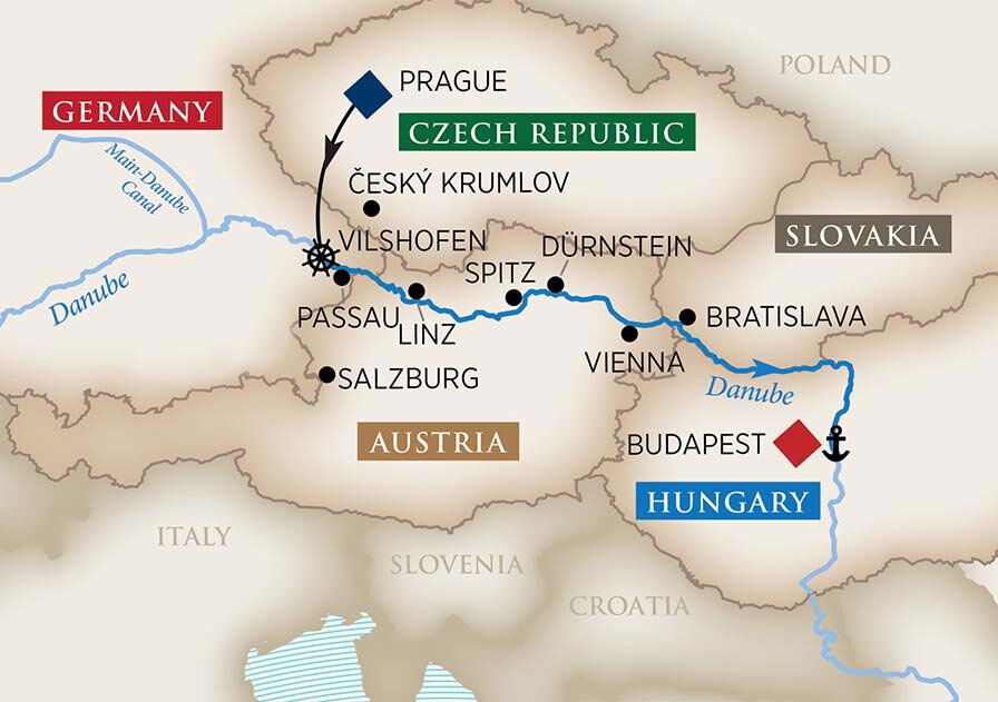 Enjoy a full-day excursion to Salzburg and tour the historic center, Mirabell Gardens, Residenz Square and the Old Market. You may also choose to join a full-day excursion to the charming Czech mountain town of Český Krumlov, where you can stroll its cobblestone streets; marvel at the city's picturesque Baroque and Renaissance-style buildings; and tour Krumlov Castle, one of Europe's largest castle complexes.