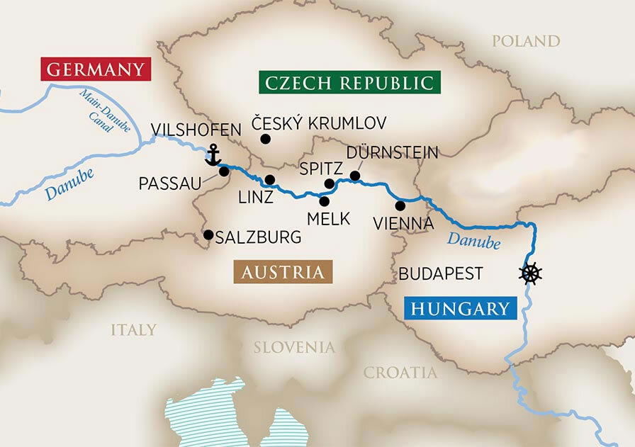 For those who love The Sound of Music, enjoy a full-day excursion to Salzburg and tour the historic center, Mirabell Gardens, Residenz Square and the Old Market. En route to Salzburg, stop at Mondsee, home of the Basilica St. Michael, where the famous wedding scene in the movie was filmed. You may also choose to join a full-day excursion to the charming Czech mountain town of Český Krumlov, where you can stroll its cobblestone streets; marvel at the city's picturesque Baroque and Renaissance-style buildings; and tour Krumlov Castle, one of Europe's largest castle complexes.