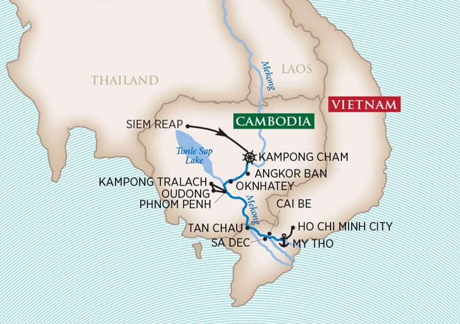 Your cruise concludes in My Tho Port, where you'll disembark and transfer via motorcoach from My Tho Port to Ho Chi Minh city. (B) *All guests will be transferred from the ship to Sofitel Saigon Plaza in Ho Chi Minh City. We recommend that you schedule your onward flight to depart Ho Chi Minh after 2:30 pm today to avoid potential missed connections.