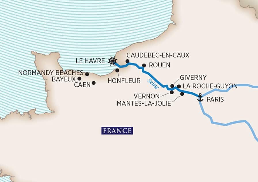 Board your ship in Le Havre for your Impressions of the Seine & Paris cruise. (D)
