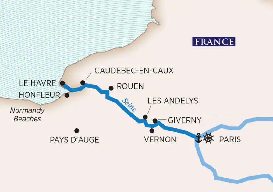 Alternatively, you can set out on a full day excursion to the delicious Pays d'Auge region of Normandy, where apple cider, Calvados and pommeau outrank French wine. If you wish to experience a different kind of inspiration in Caudebec-en-Caux, you can journey back in time with the interactive exhibits and vessels at the Seine Museum. (B/L/D)