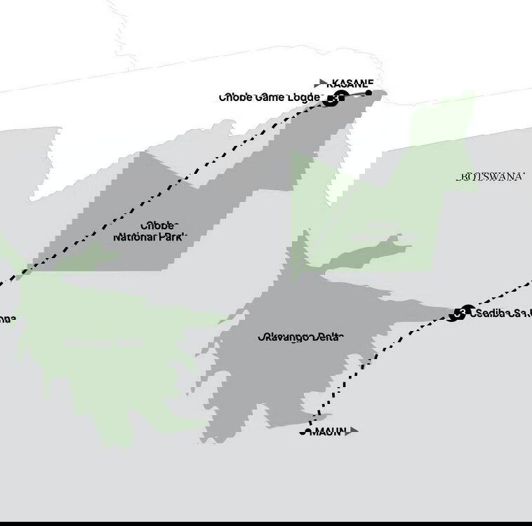 This morning, embark on an exhilarating game drive through Chobe National Park - Botswana's first national park and a sanctuary renowned for its impressive herds of elephants and diverse wildlife. After a relaxing break at your lodge, set out on a captivating boat safari this afternoon along the Chobe River, where the cool water attracts an abundance of animals from the surrounding sunbaked bush. (B/L/D)