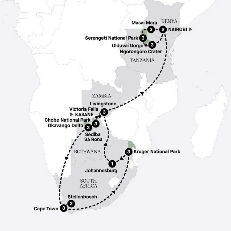 This morning, enjoy breakfast before being transferred to a local airstrip for your light aircraft flight to Maun. Then, join your onward flight to Cape Town. On arrival, you will be transferred to your luxurious hotel. This evening, a welcome dinner awaits, where you'll meet your fellow travellers joining you in Cape Town. Stay Three Nights: Cape Town, Belmond Mount Nelson Hotel (B/D)