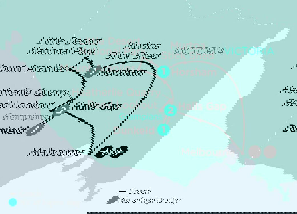 We depart Melbourne at 9am to make our way to a private historic homestead for a tour of its gardens before stopping for lunch. Continue to Halls Gap, in the heart of the Grampians, to visit the Brambuk Cultural Centre. Here we learn about the region's geology and flora. We then check into our hotel before enjoying a Welcome Dinner at a local restaurant. Stay Two Nights: Halls Gap, Country Plaza Hotel or similar (L/D)