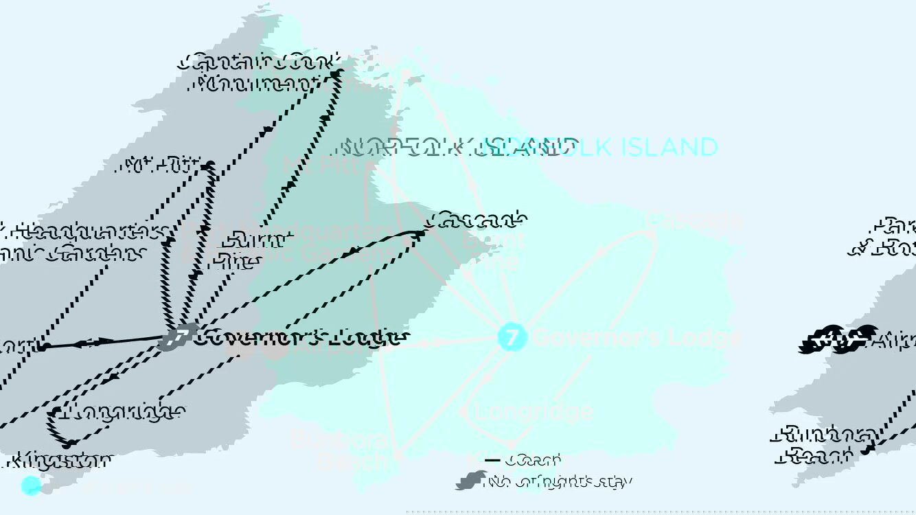 Meet at Sydney airport for your flight to Norfolk Island. On arrival, we'll transfer you to the Governor's Lodge Resort, set within 12 acres of landscaped subtropical gardens. Tonight enjoy a Welcome Dinner at your hotel. Stay Seven Nights: Norfolk Island, The Governor's Lodge Resort or similar (L/D)