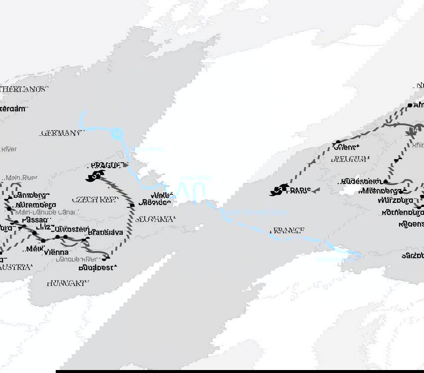 This morning gives you the chance to choose your sightseeing activity. This afternoon, continue cruising along the Main-Danube Canal while indulging in a Bavarian beer, sausage and pretzel tasting on the Daystar Deck. Having taken 32 years to construct, the canal links the North and Black seas. (B/L/D)