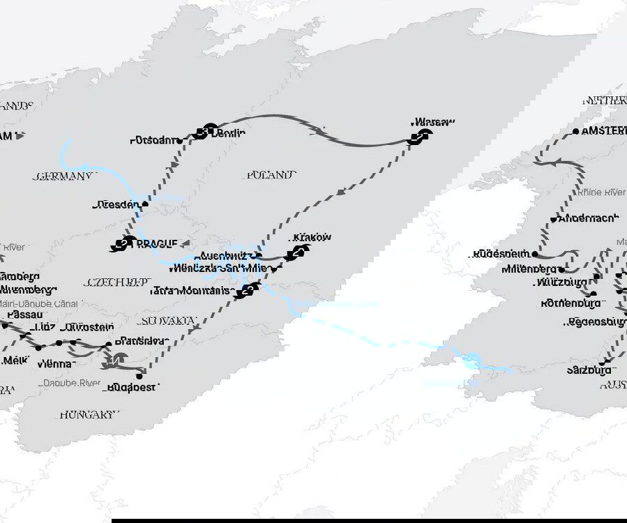 Travel into Poland and arrive in Warsaw. Enjoy dinner at a Polish inn, featuring classic cuisine alongside live folk music. Stay Two Nights: Warsaw, Hotel Bristol (B/D)