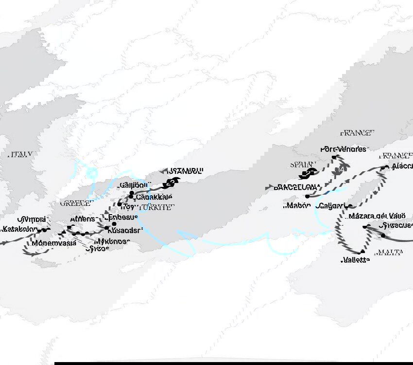 After lunch back on board, travel to the ancient city of Troy, the setting for the legendary Trojan War in Homer's two epic poems, ‘The Iliad' and ‘The Odyssey'. Visit the town's enthralling museum, which houses an interesting collection of Trojan artefacts, as well as a fascinating range of ancient fossils from the Bronze Age through to modern times. (B/L/D)