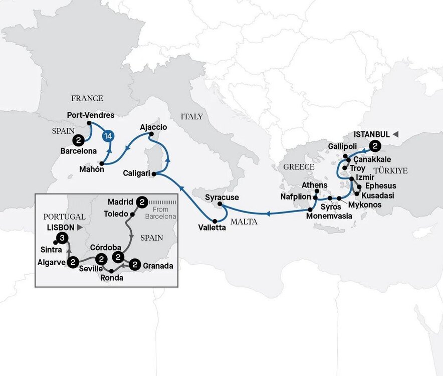 Journey to the Spanish island of Menorca, known for its sweeping countryside, historic towns and superb beaches. In 1708, British and Dutch forces captured the island from Spain, and the British occupied the island on and off until it was returned to Spain in 1802. Dock in the capital, Mahón, known locally as Maó. The port of Mahón is the largest natural harbour in the Mediterranean and the second largest in the world. Decide how to explore today with a range of sightseeing options to choose from. (B/L/D)