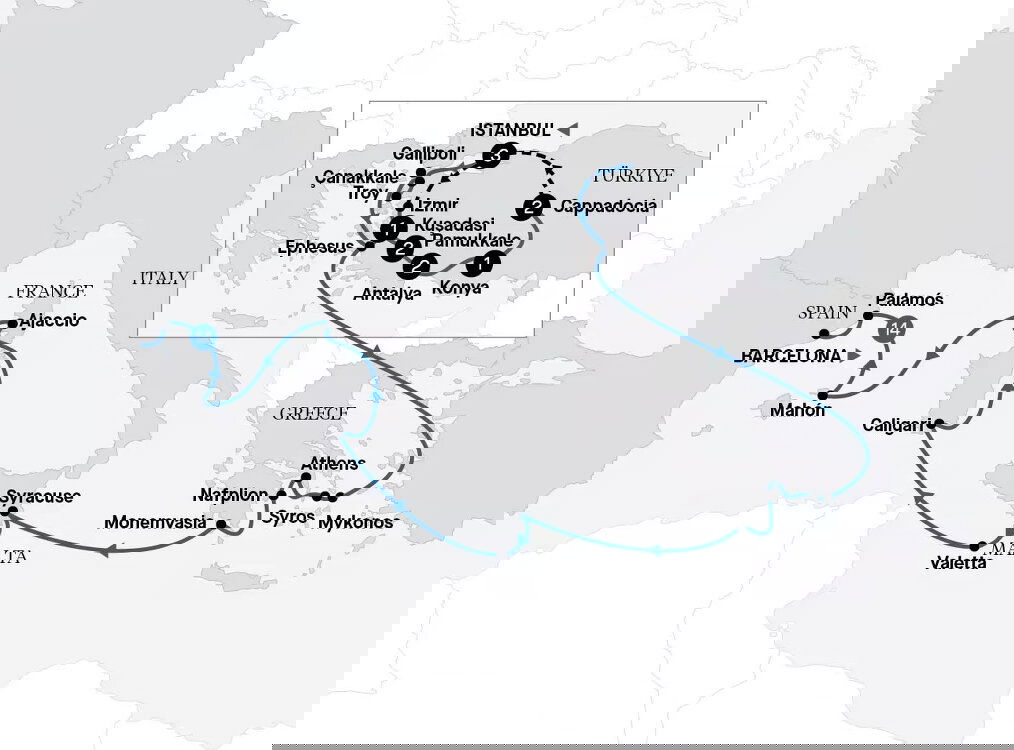 This morning, arrive in Çanakkale and immerse yourself in Anzac history with a captivating excursion to the Gallipoli Peninsula. Explore the numerous trenches and memorials that stand as a tribute to those who lost their lives in World War I. Pay your respects at Anzac Cove, the Australian Memorial at Lone Pine, and the New Zealand Memorial at Chunuk Bair. After lunch back on board, travel to the ancient city of Troy, the setting for the legendary Trojan War in Homer's two epic poems, ‘The Iliad' and ‘The Odyssey'. Visit the town's enthralling museum, which houses an interesting collection of Trojan artefacts, as well as a fascinating range of ancient fossils from the Bronze Age through to modern times. (B/L/D)