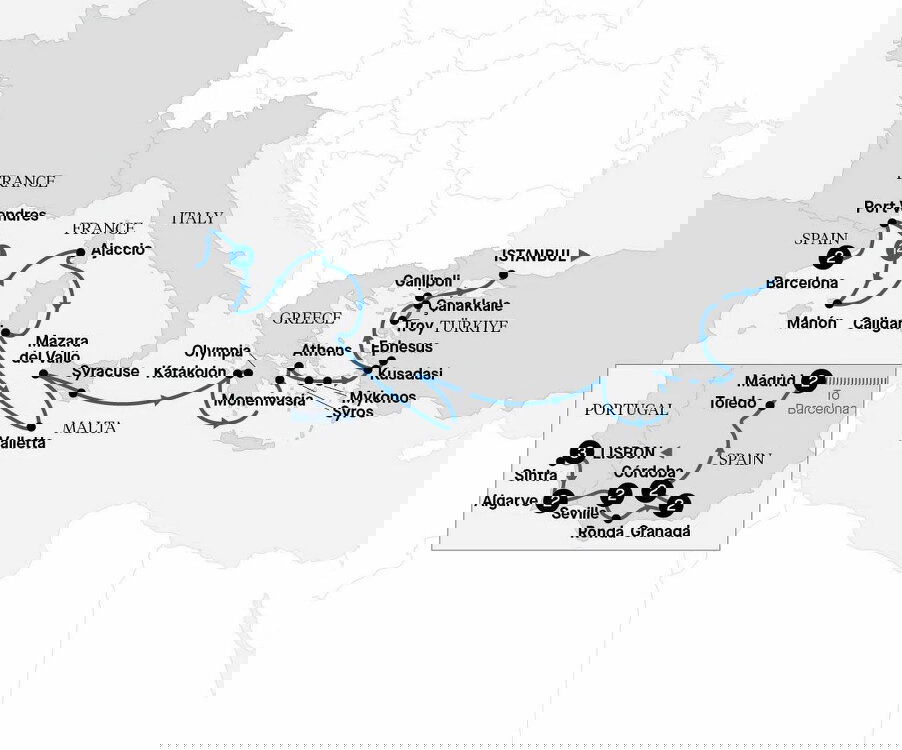 After lunch back on board, travel to the ancient city of Troy, the setting for the legendary Trojan War in Homer's two epic poems, ‘The Iliad' and ‘The Odyssey'. Visit the town's enthralling museum, which houses an interesting collection of Trojan artefacts, as well as a fascinating range of ancient fossils from the Bronze Age through to modern times. (B/L/D)