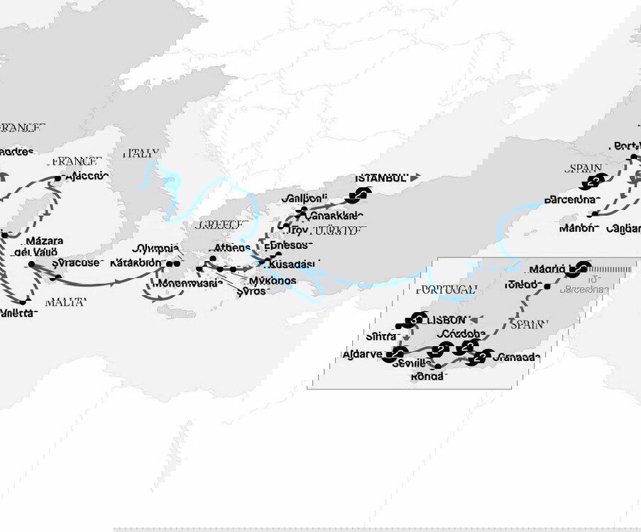 After breakfast, you will arrive back on the island of Sicily. Dock in Mazara del Vallo and venture to Selinunte Archaeological Park. Selinunte was an ancient Greek city established in the seventh century BC. Covering an impressive 270 hectares, the sprawling archaeological site is situated between rolling green hills and the glistening waters of the Mediterranean. Take a guided tour of the Acropolis, eastern temples and the ruins before returning to your ship to set sail in the afternoon. (B/L/D)